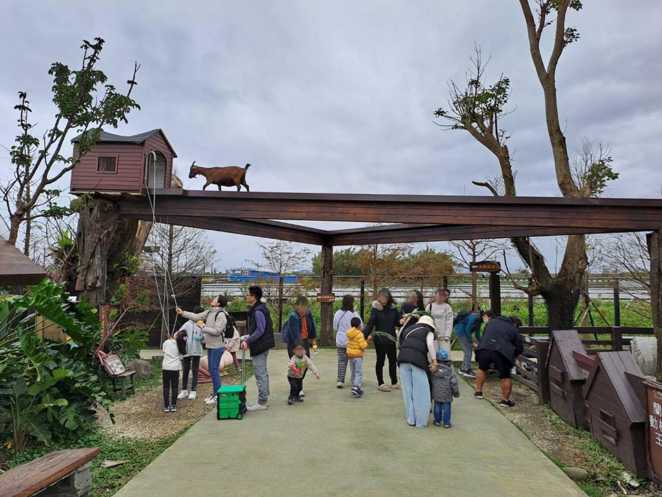 ▼特別介紹一下咩咩村,特別又有趣的餵食法讓大小朋友都來體驗了!走在高架上的羊咩咩可不只是在散步,有可能是在等食物上門喔~