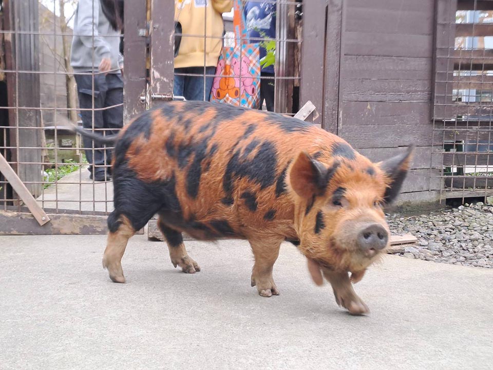 ▼在袋鼠農場裡有一隻特別顯眼的酷你豬,喜歡在門口附近徘徊,不知道是不是在找逃家的機會,所以大家在進出各園區的時候,門一定要隨手關上喔!